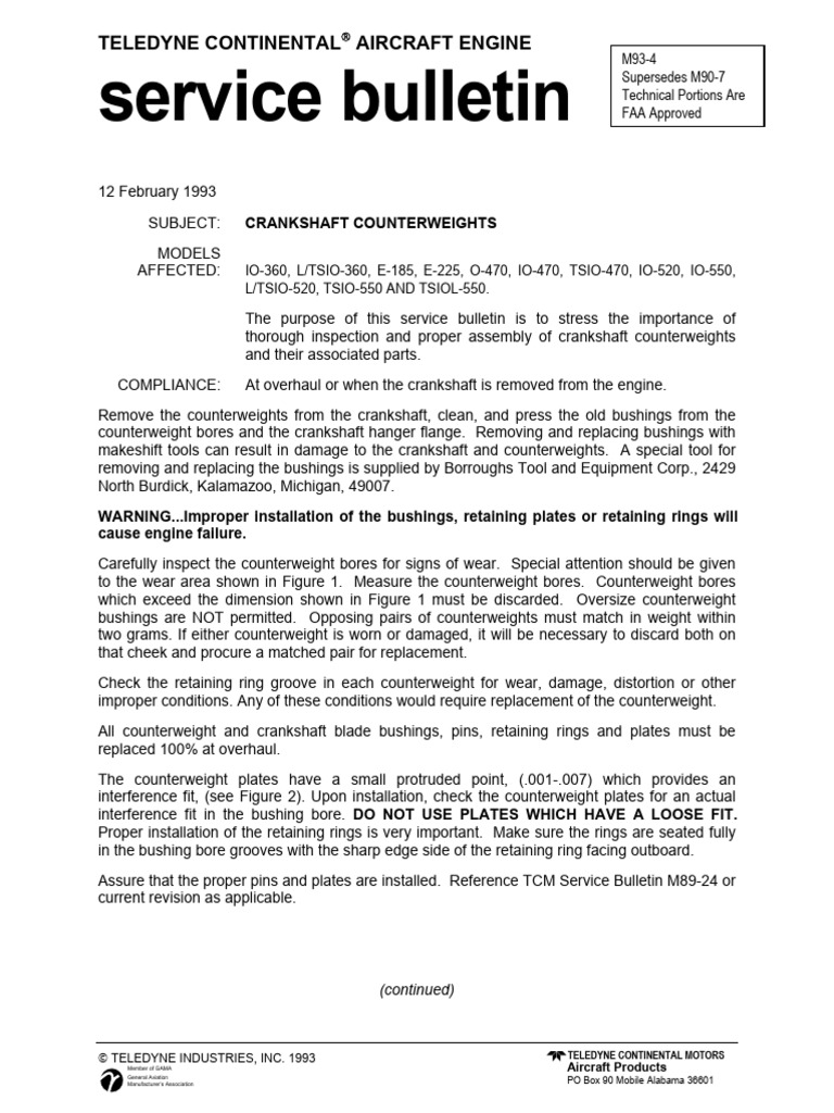 Service Bulletin Teledyne Continental Aircraft Engine PDF Aviation