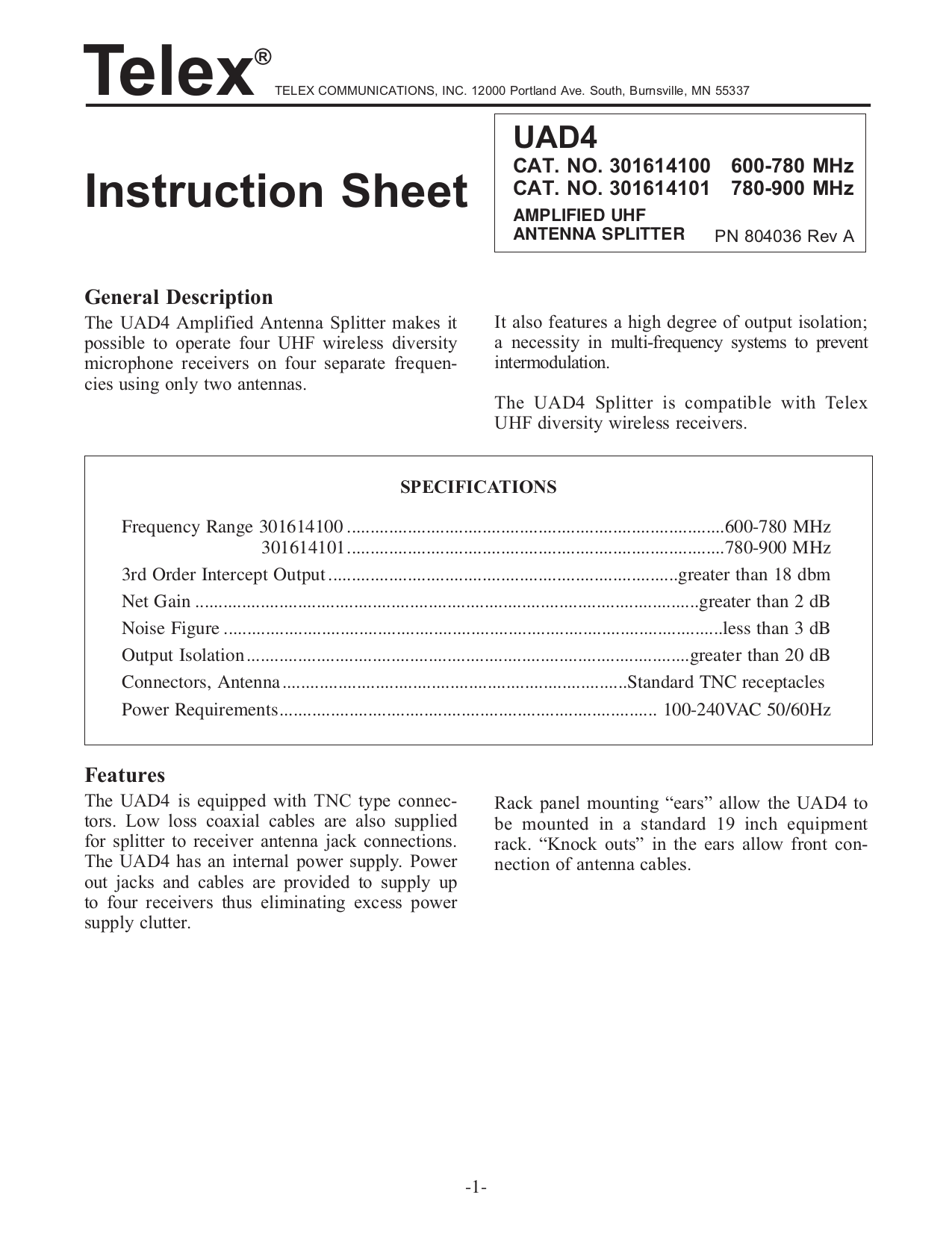 Telex FMR500 Clear Scan Receiver, FMR70 UAD4 Antenna Splitter eBay