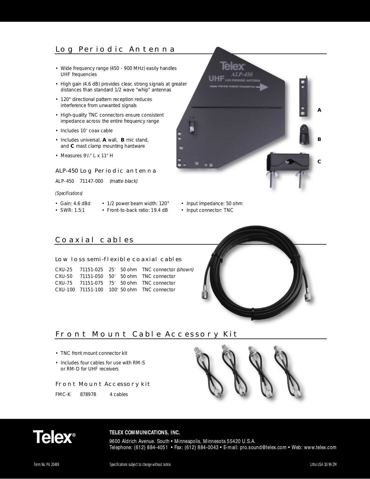 Telex ALP450 Log Periodic Antenna 450900 MHz directional Reverb