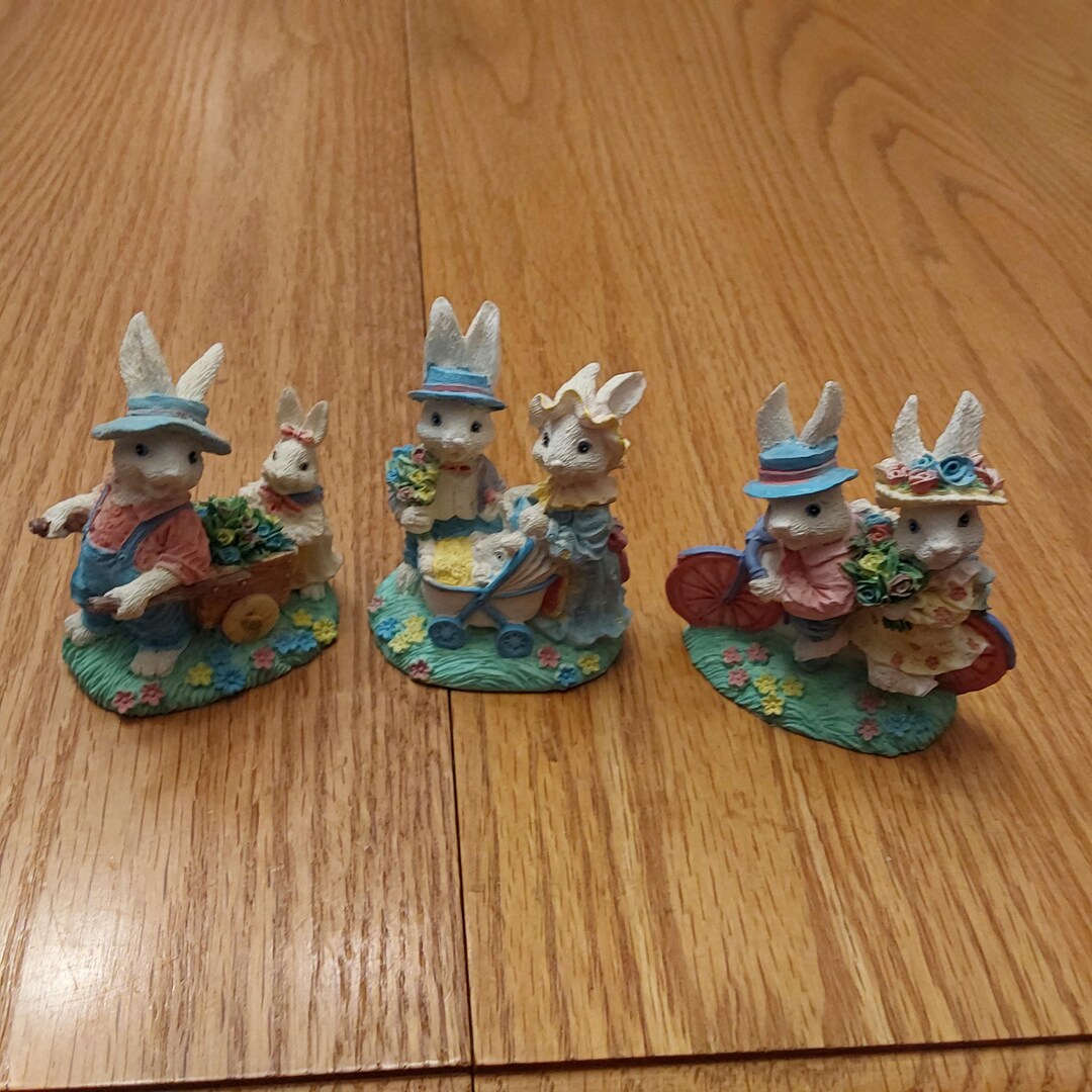 A Set of 3 Terry's Village Resin Easter Bunnie Figurines, With 2