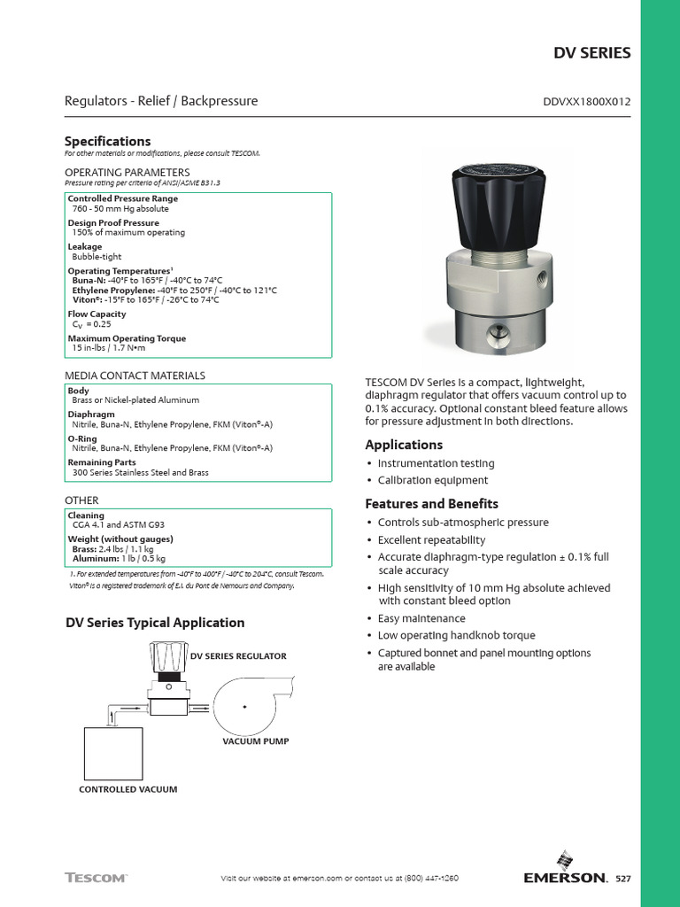 Catalog DV Series Pressure Regulator Instrumentation en 5386152