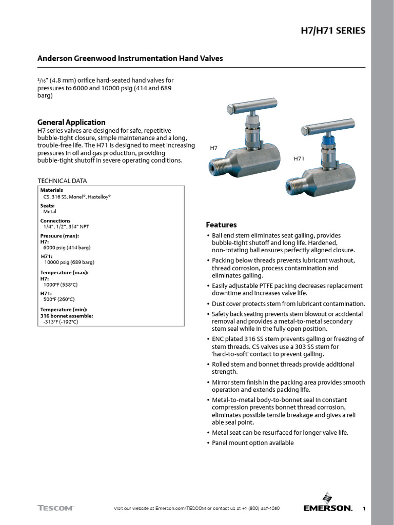 Catalog h7 h71 Series Hand Valves Agi en 5469136 PDF