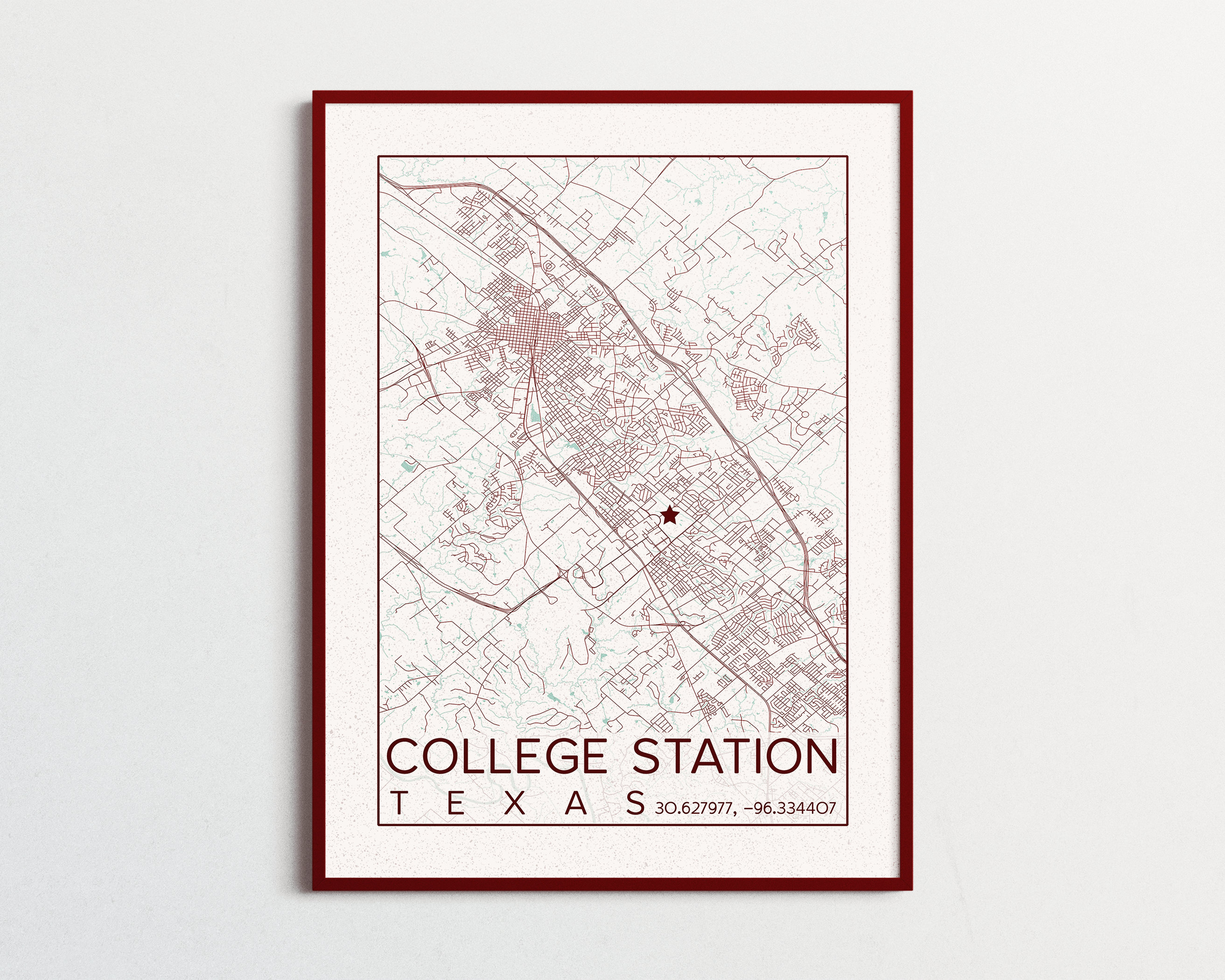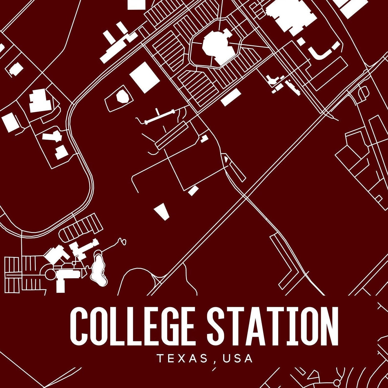 College Station Texas Printable Map Texas A&M Wall Art Etsy