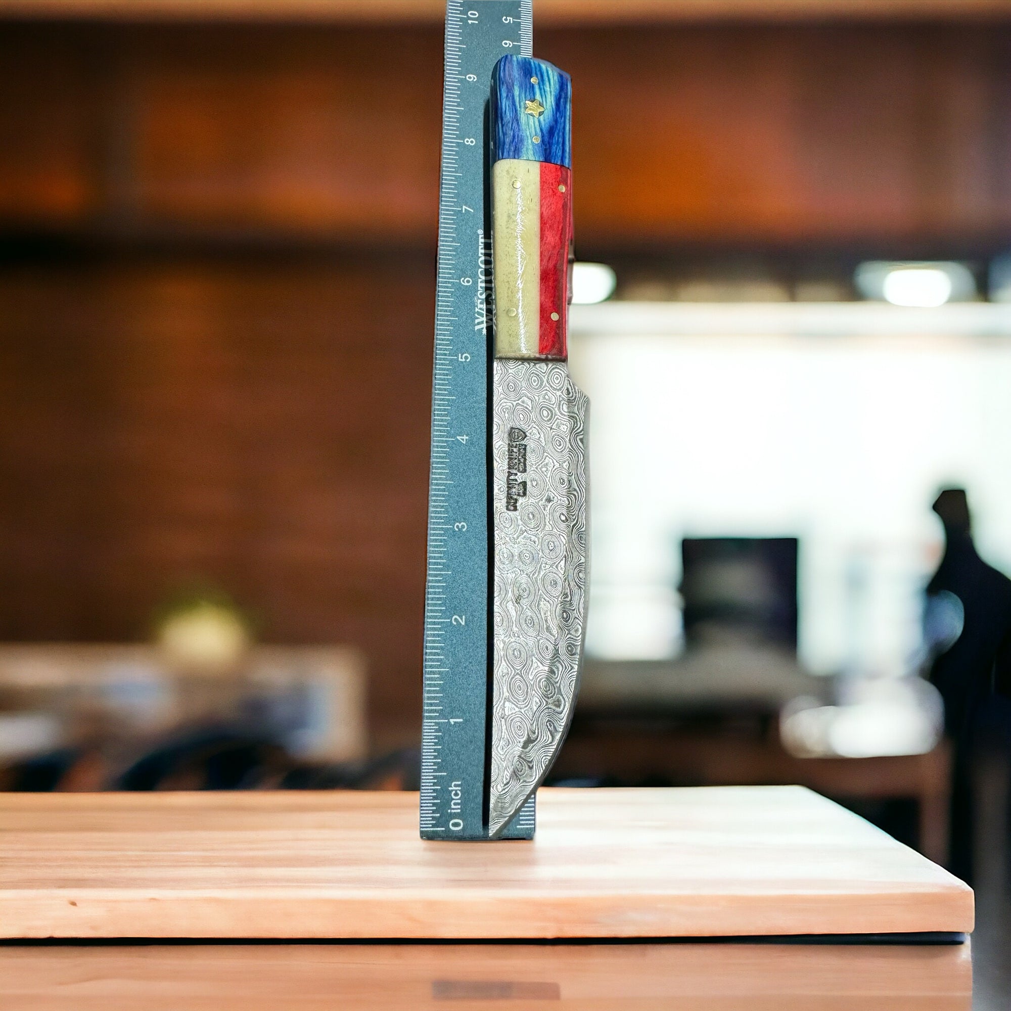ASH TX8 Damascus Steel Custom Handmade Texas Flag Hunting Bushcraft