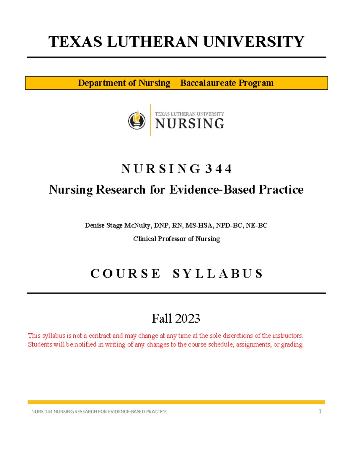 Habsn FA23 NURS 344 Syllabus TEXAS LUTHERAN UNIVERSITY N U R S I N G