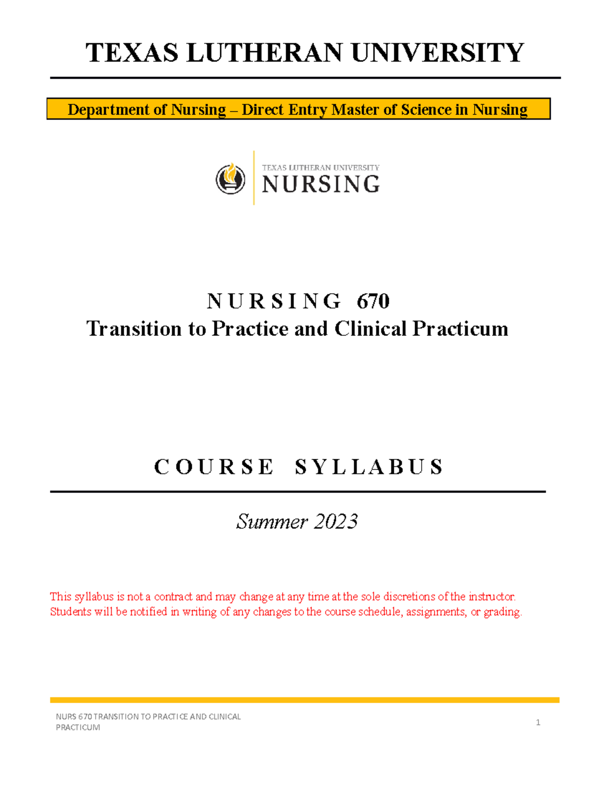 Syllabus Capstone TEXAS LUTHERAN UNIVERSITY Department of Nursing