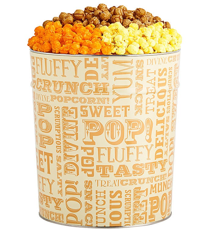 1.75 Gallon Retro 3 Flavor Popcorn Tin The Popcorn Factory