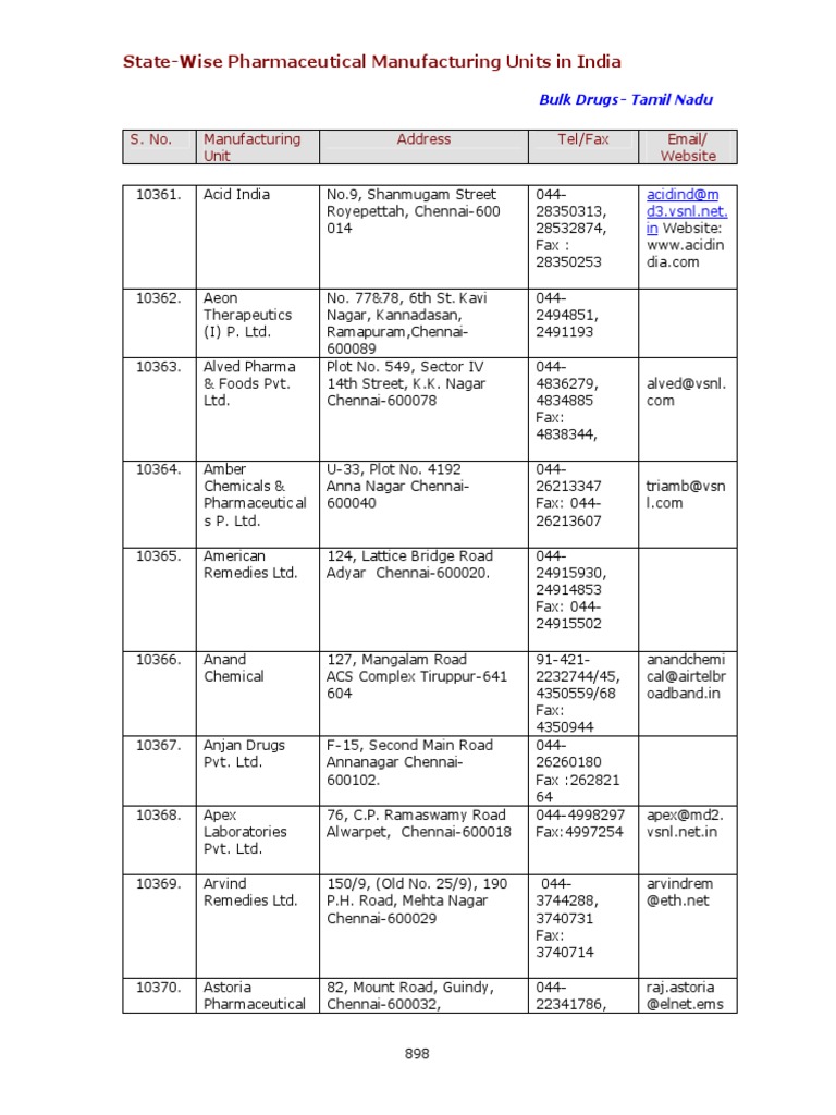 Bulk Drug Manufacturers PDF
