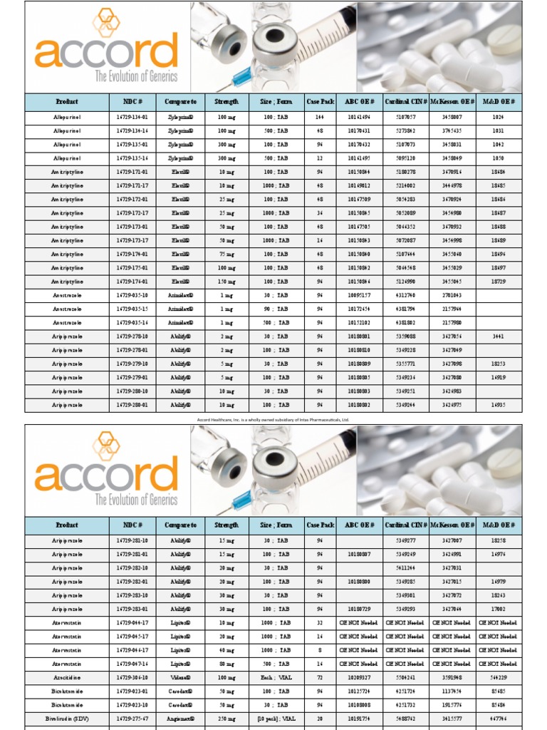 Accord Healthcare Generic Drug Product Catalog with Manufacturer and
