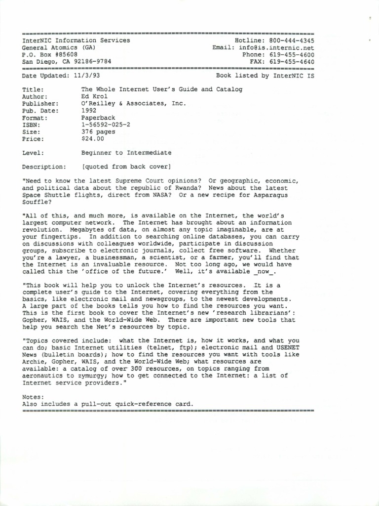 The Whole Internet User's Guide & Catalog