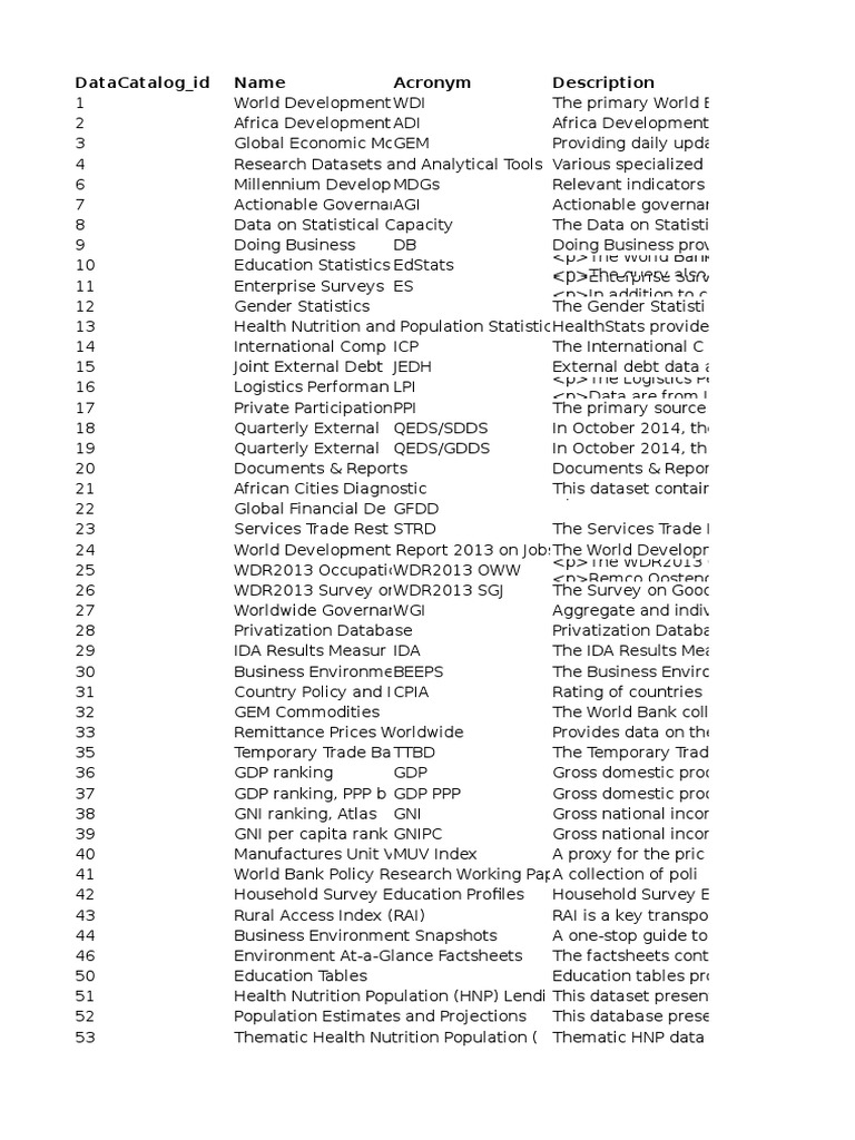World Bank Data Catalog Overview PDF International Finance