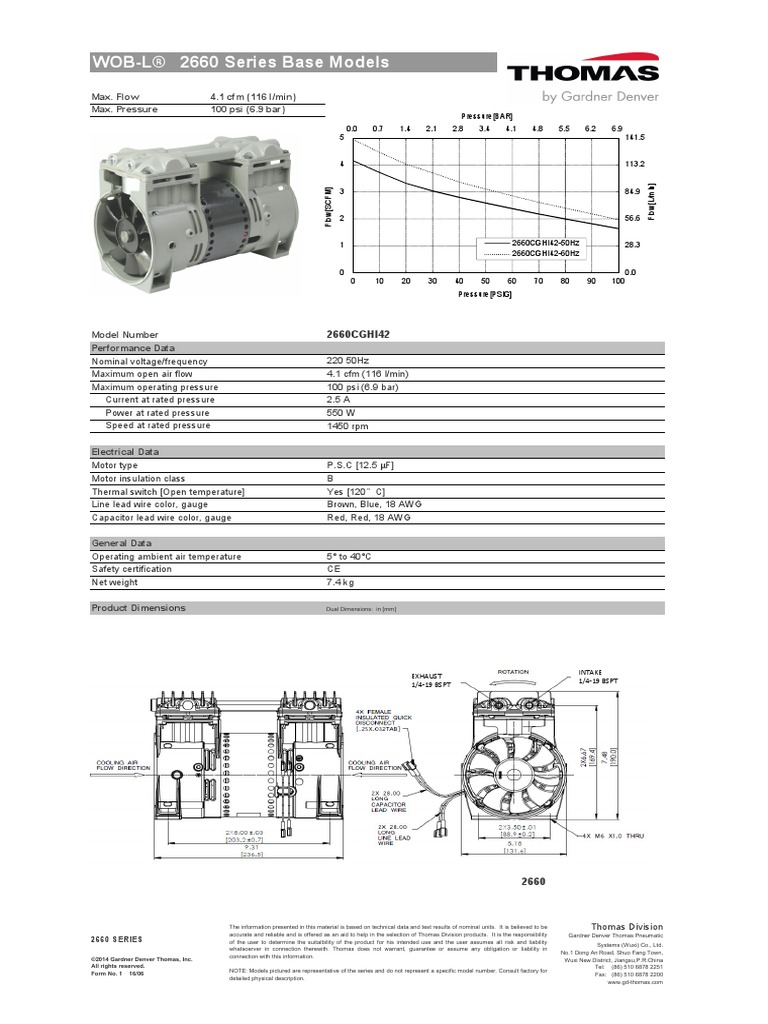 2660 Thomas Medical Grade Compressor For Ventilator Oxygen Concentrator