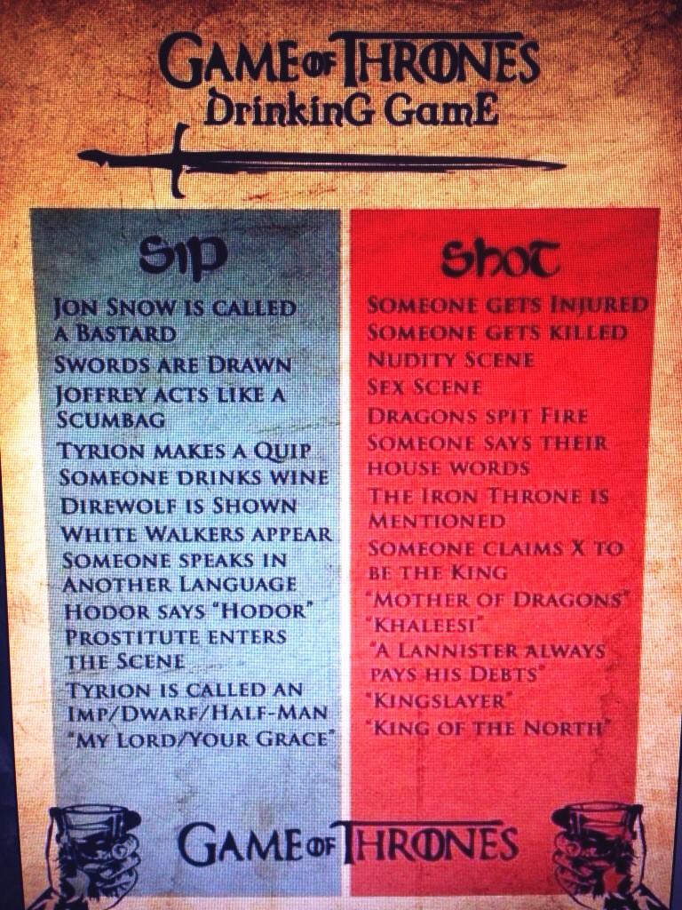 Game of Thrones Drinking Game Funny dialogues, Drinking games