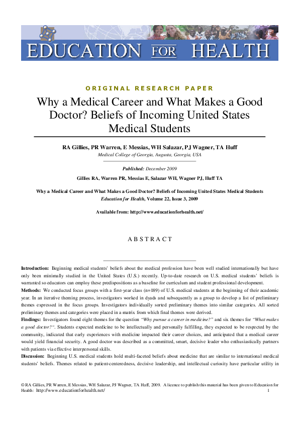 (PDF) Why a Medical Career and What Makes a Good Doctor? Beliefs of