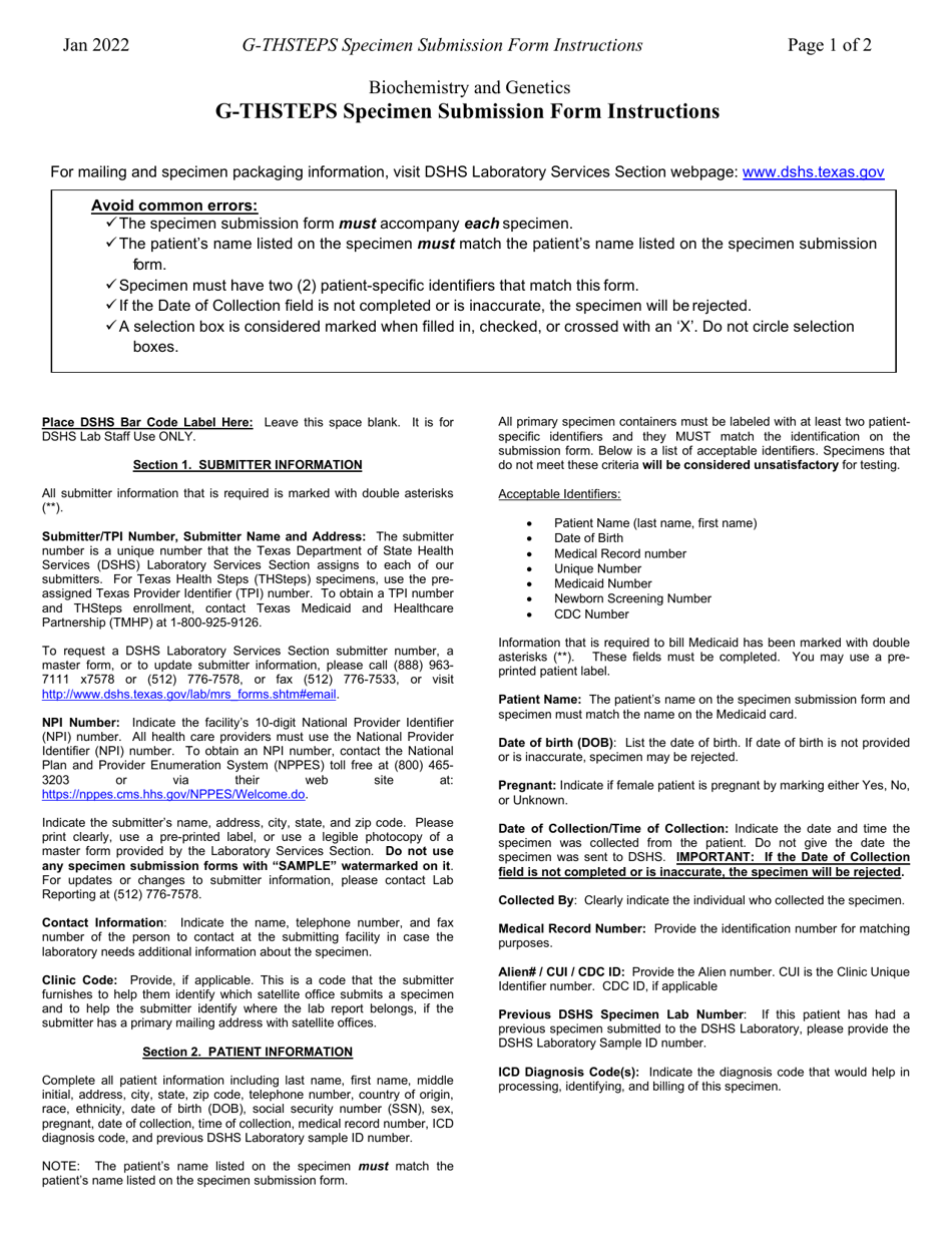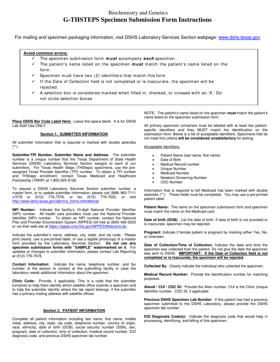 Download Instructions for Form GTHSTEPS GThsteps Specimen Submission