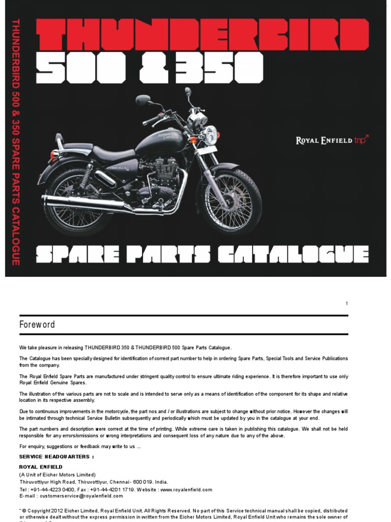 Thunderbird 500 350 Parts Catalogue PDF PDF Screw Motor Oil