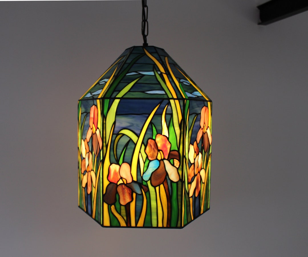 Tiffany Iris Hanging Lamp, Flower Lamp, Fleurdelis, Custom Lamp