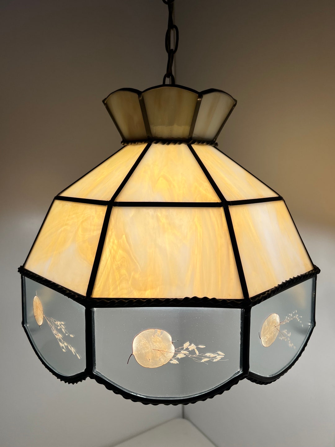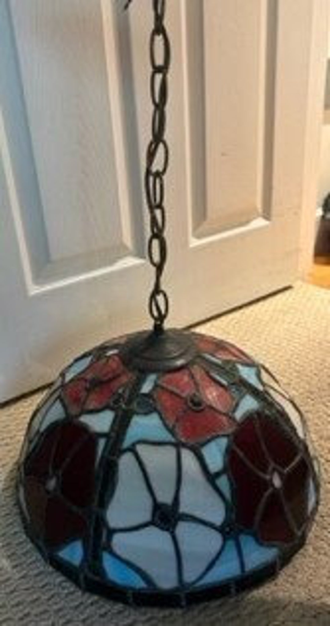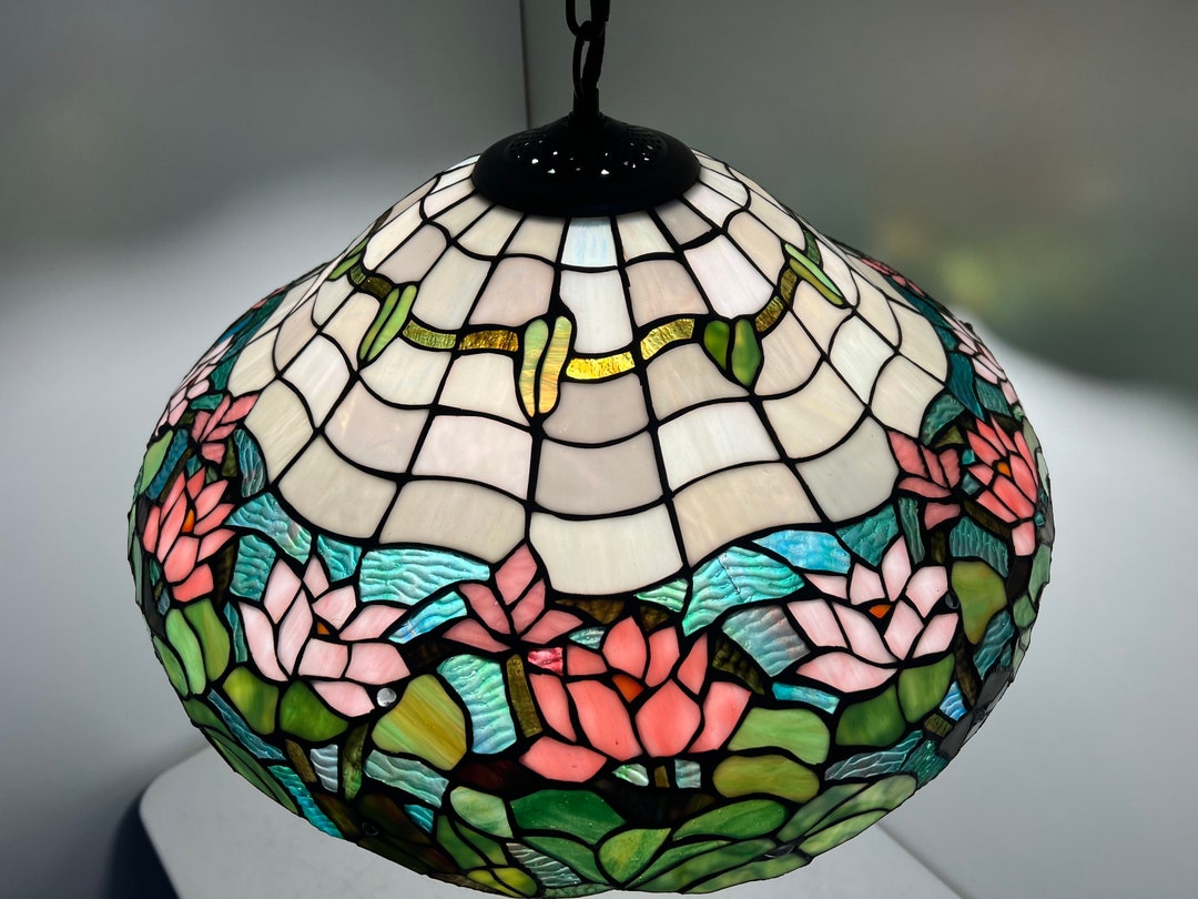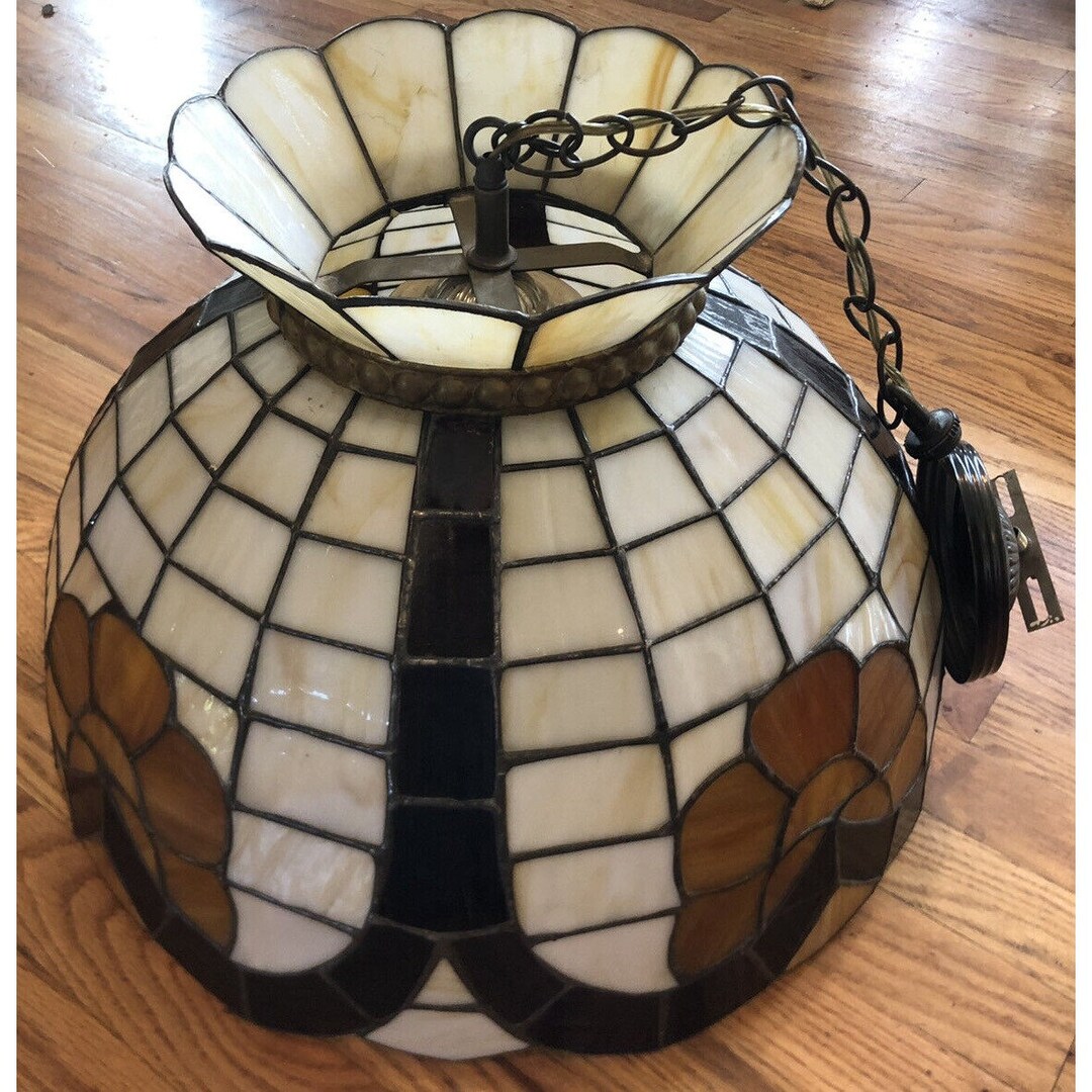 Vintage Tiffany Style Hanging Ceiling Lamp Light 1970's Stained Glass
