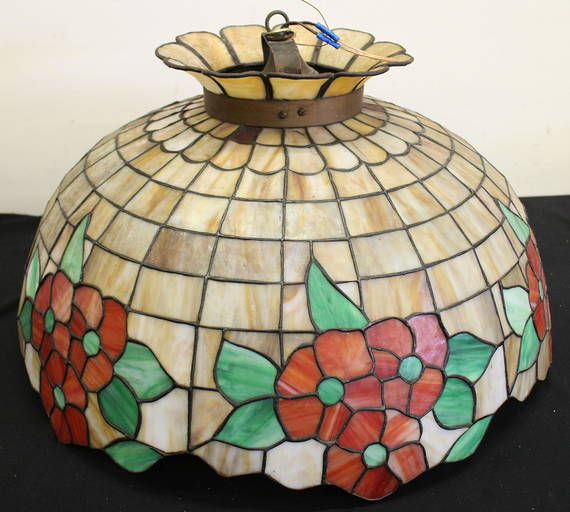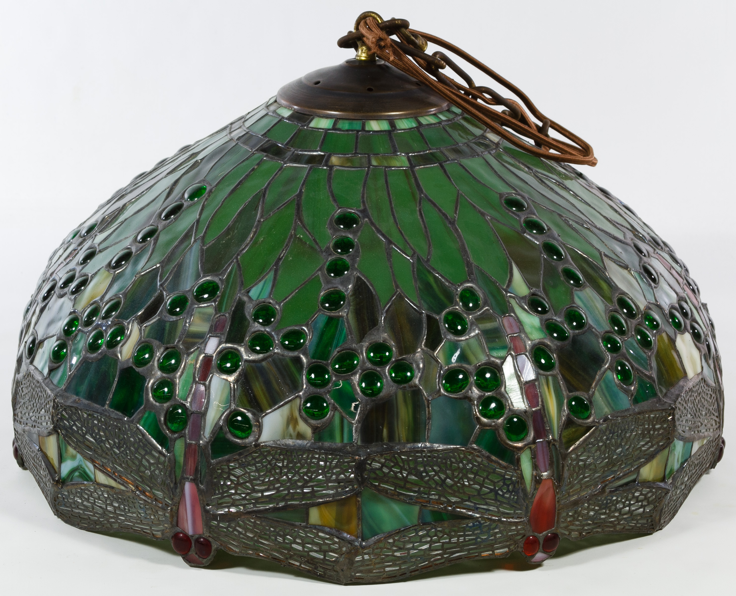 Vintage Arts and Crafts Leaded Slag and Jeweled Glass Tiffany Style