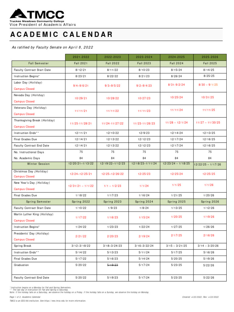 TMCC Academic Calendar Download Free PDF Academic Term Traditions