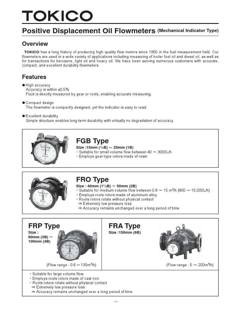 CATALOG TOKICO FLOW METER, KATALOG TOKICO FGBBFROFRP