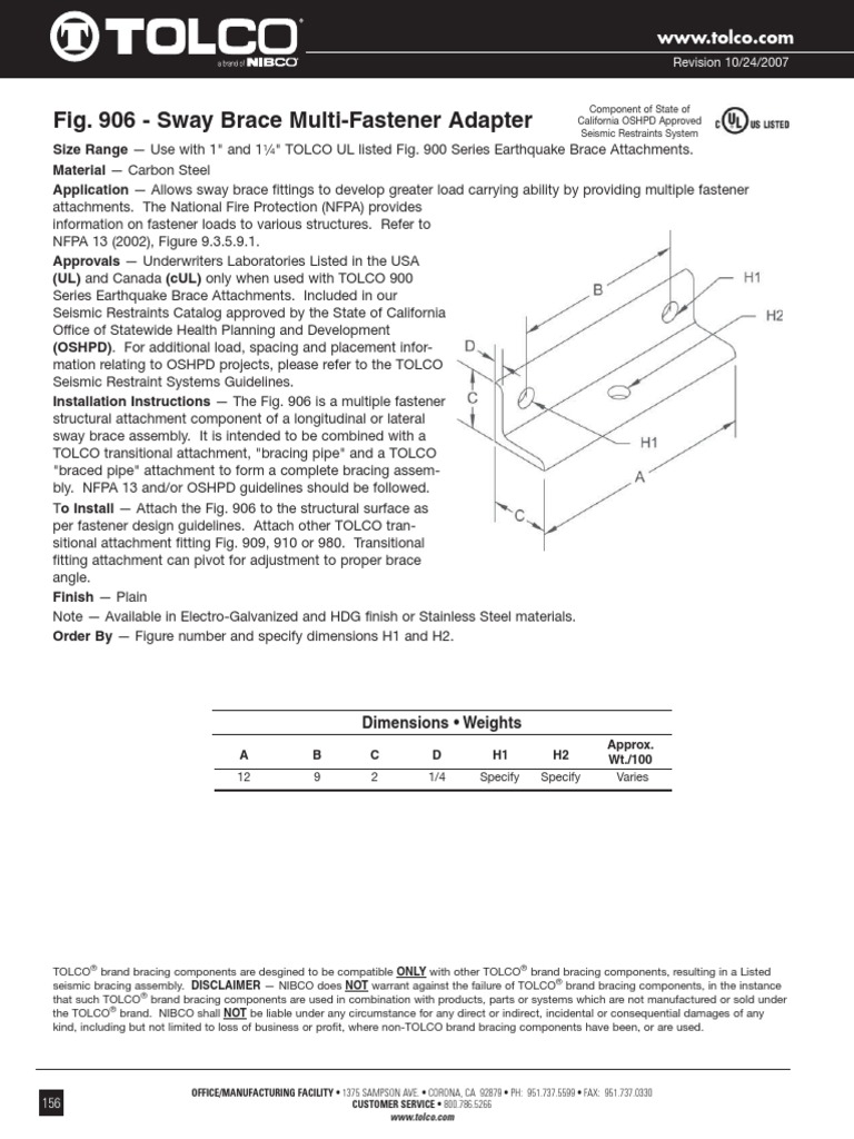 Fig. 906 Sway Brace MultiFastener Adapter Dimensions Weights