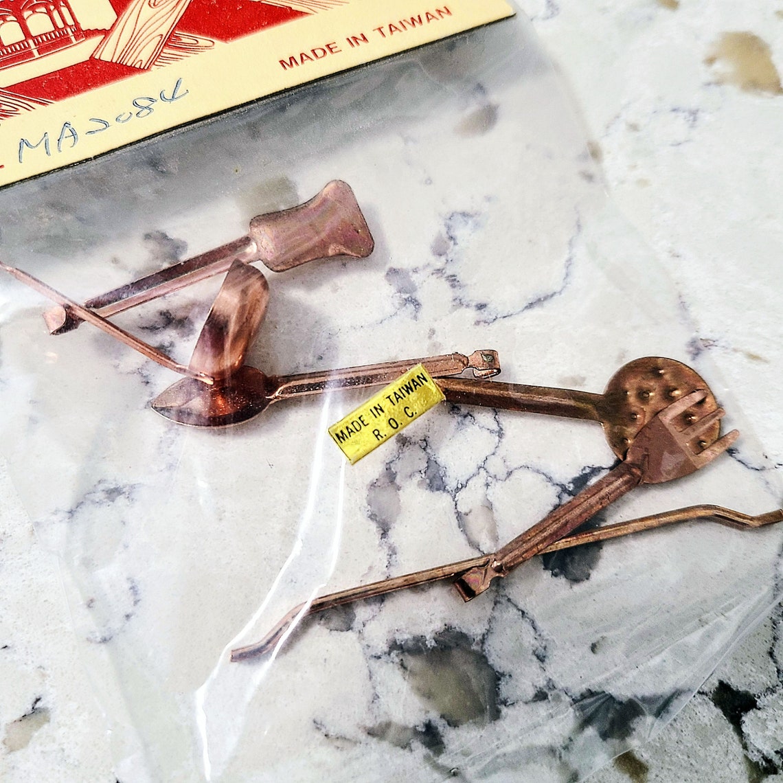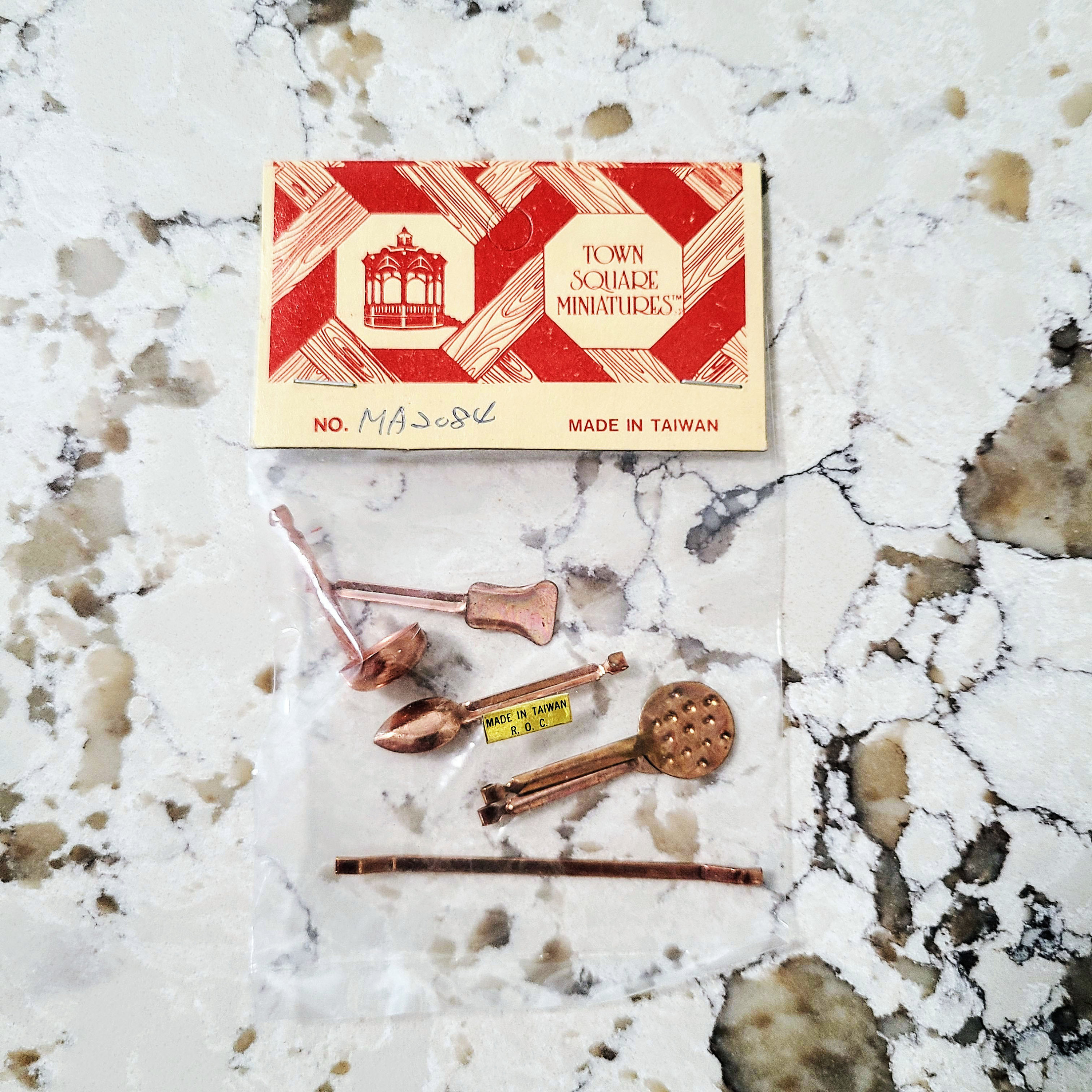 1960s Dollhouse 'town Square Miniatures' Copper Kitchen Utensil 6 Piece