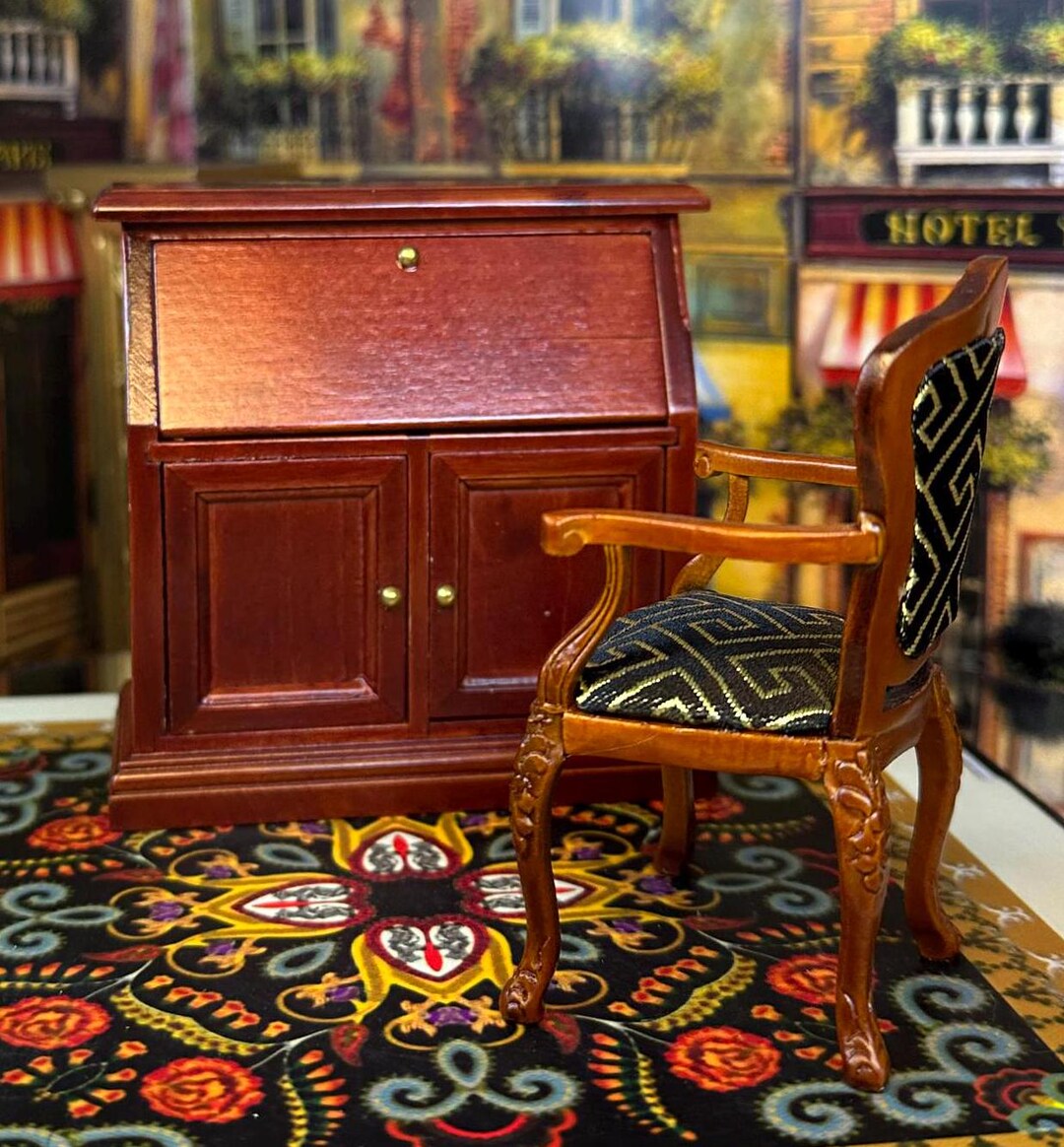 Town Square Miniature Dollhouse Replica Modern Drop Down Mahogany Desk