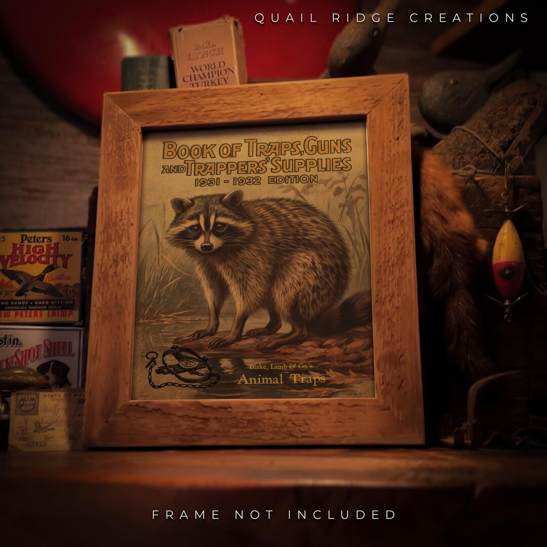 Vintage Raccoon Hunting Trapping Catalog Poster Art Print 8x10 Unframed