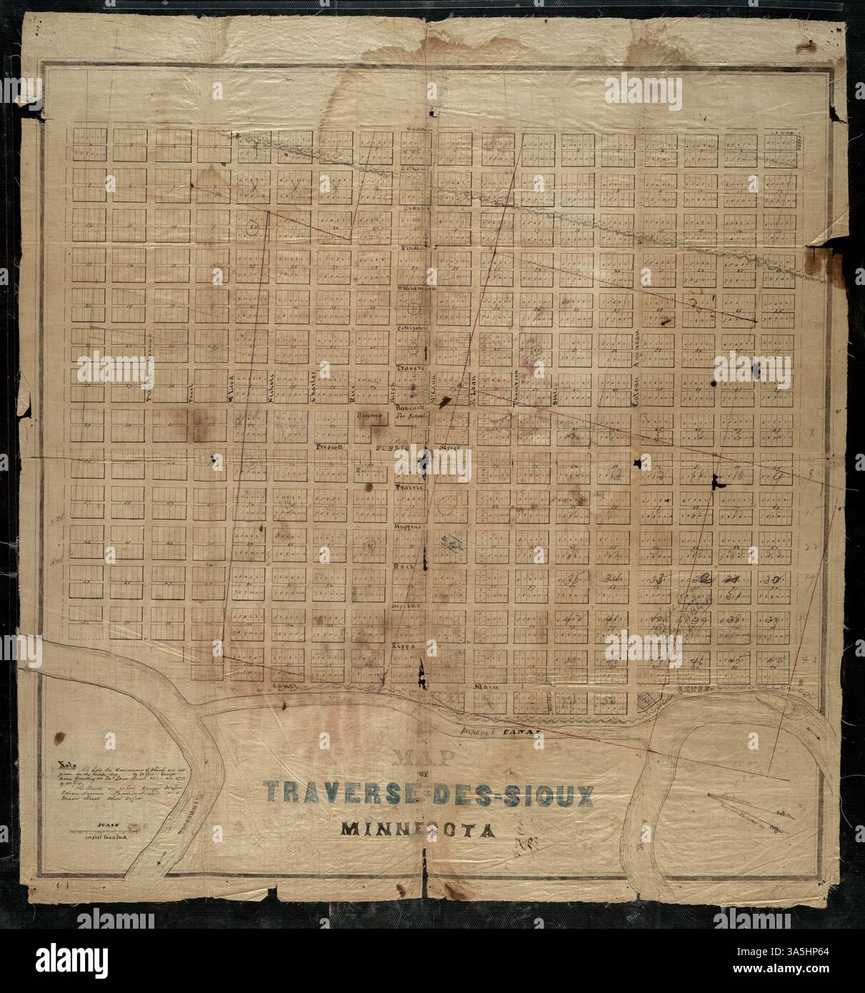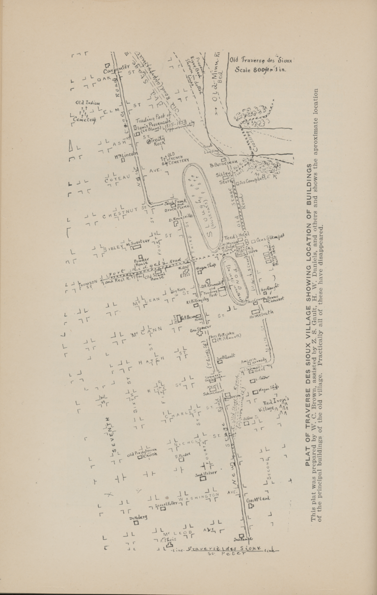 This map shows the village of Traverse des Sioux along the Minnesota