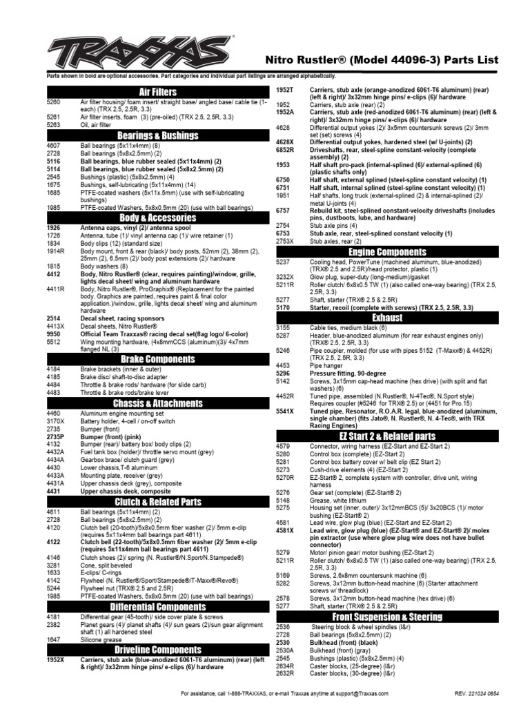 Traxxas Nitro Rustler Parts Codes PDF Axle Steering
