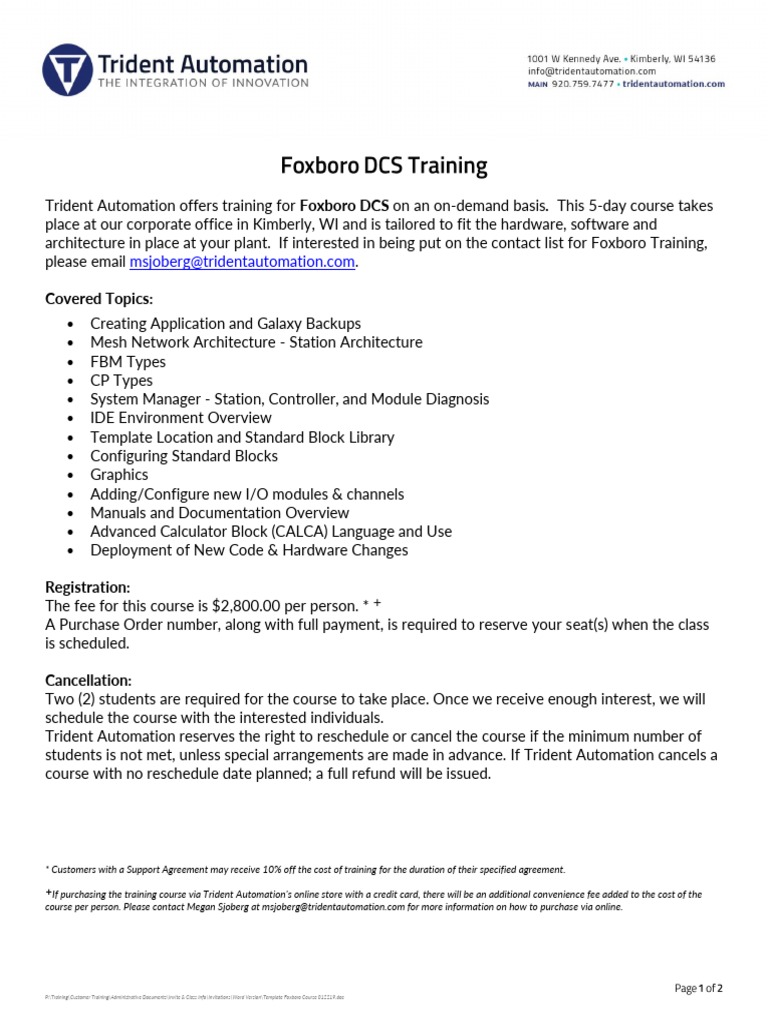 Trident Automation Foxboro Course 020619 PDF Automation Hotel