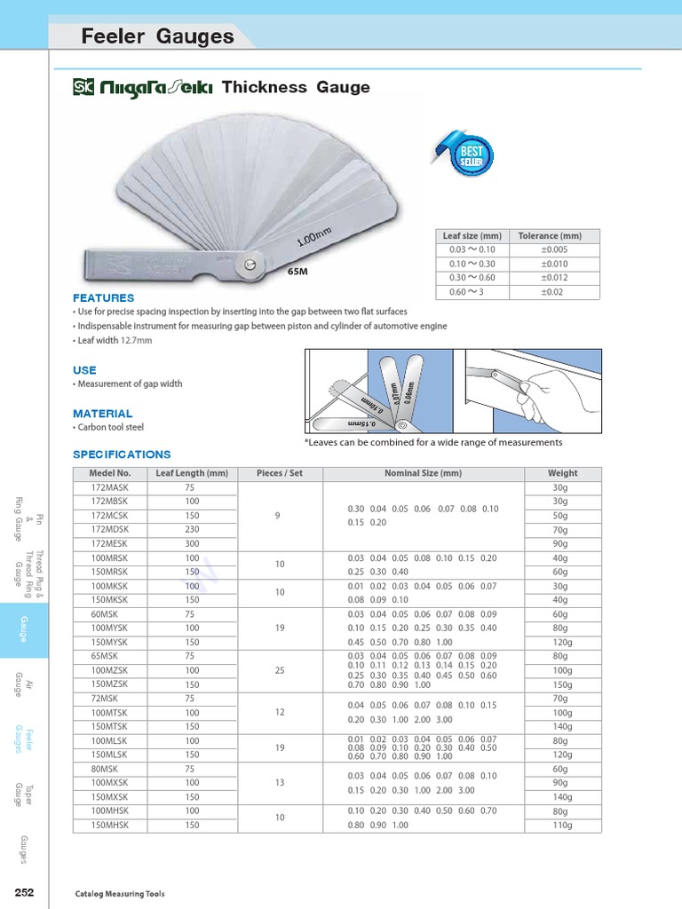 Trusco Thickness Gauges Catalog PDF Sheet Metal Piston