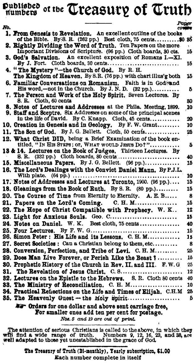 000 Treasury of Truth Catalog (1918) Plymouth Brethren Archive