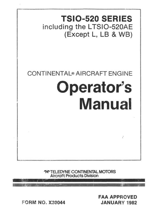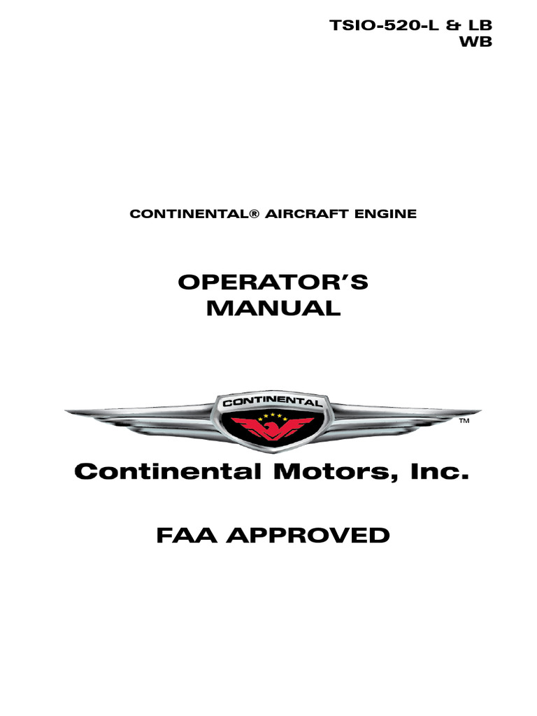 Tsio520L & LB WB Continental Aircraft Engine Operator S Manual Faa