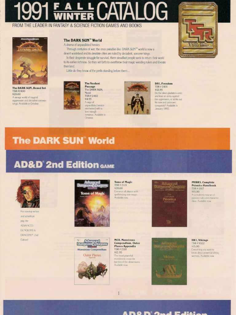 1993 TSR Catalog PDF Dungeons & Dragons Wizards Of The Coast Games
