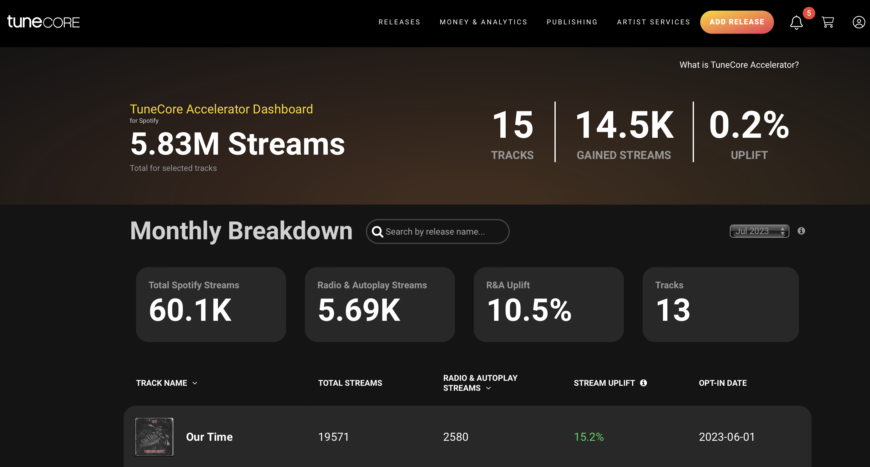 TuneCore Accelerator Dashboard TuneCore