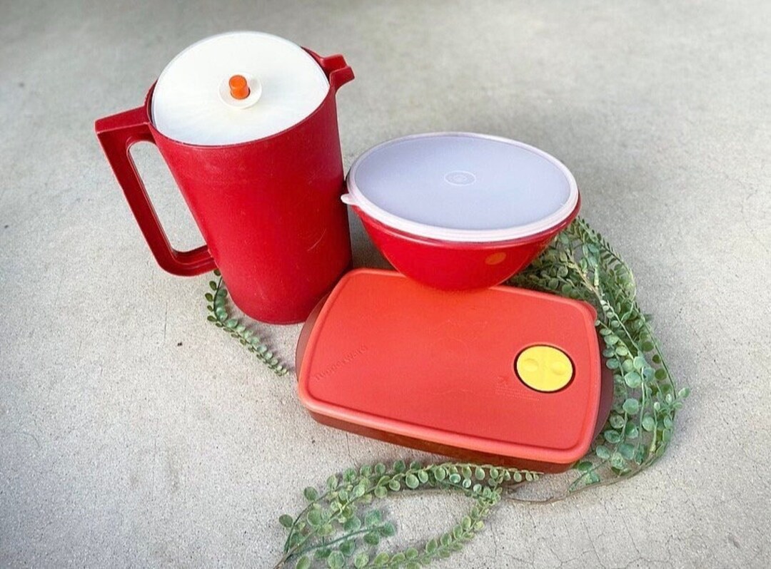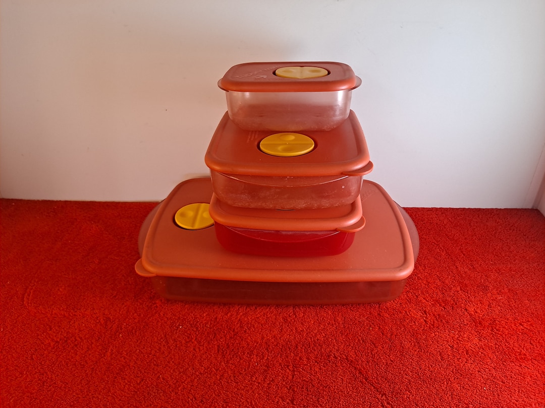 Vintage Tupperware Rock N Serve Set, 4 Containers / Rock and Serve, Red