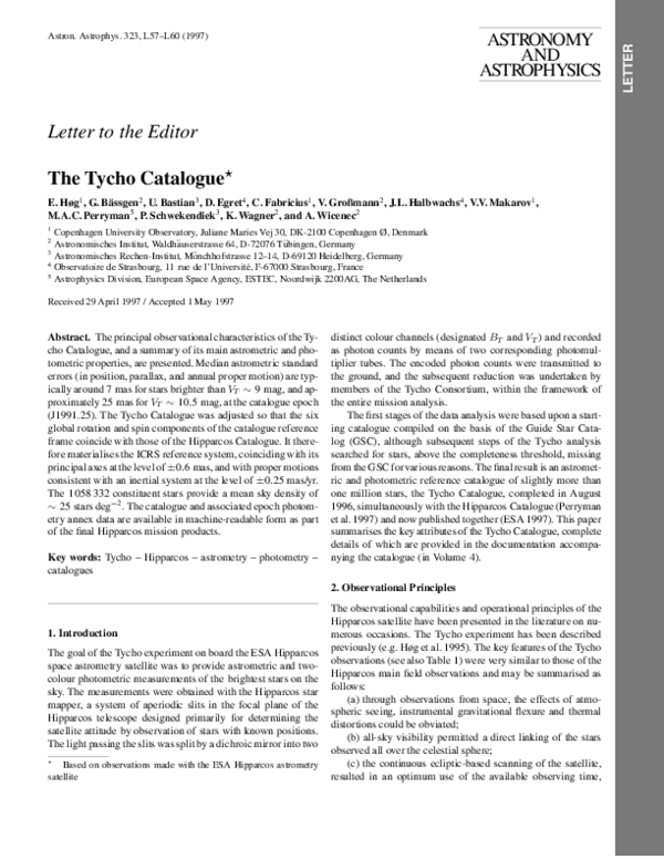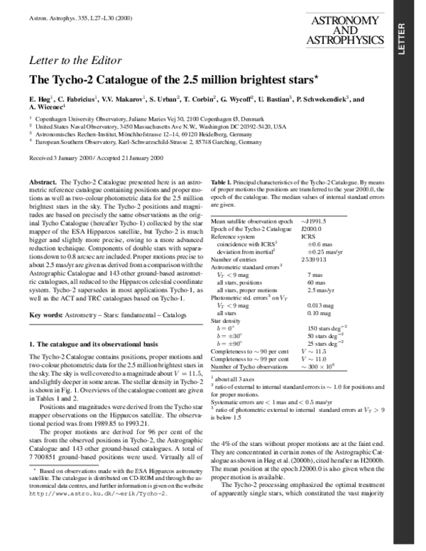(PDF) The Tycho2 Catalog of the 2.5 Million Brightest Stars