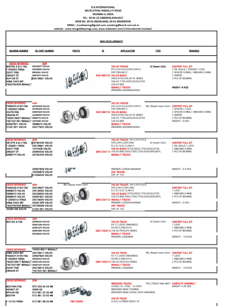Bearing Cross Reference Guide for Volvo, Renault, Mercedes, Man, and