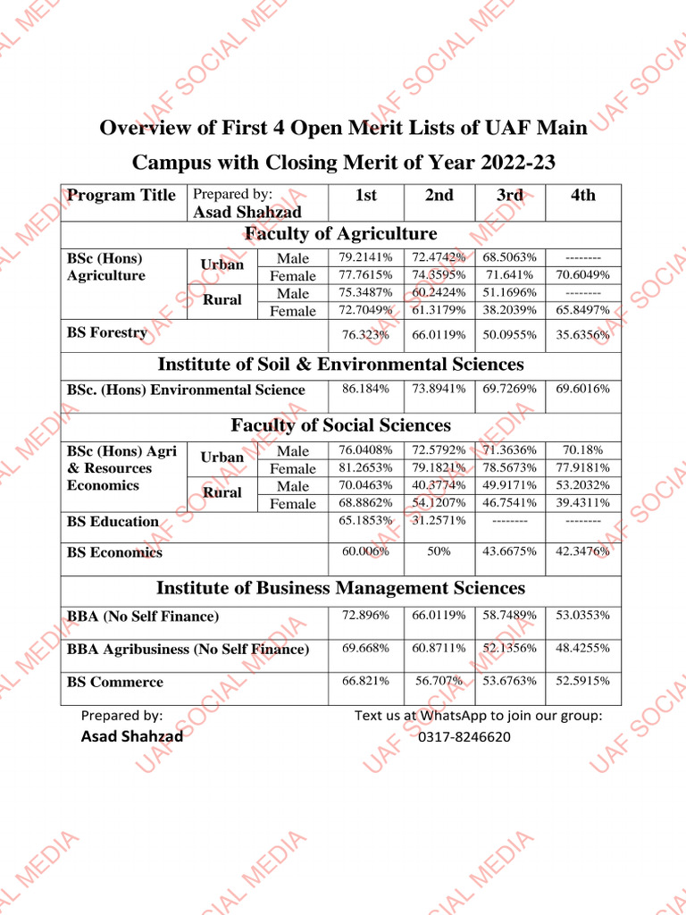 Overview of First 4 Open Merit Lists of UAF 202223 PDF