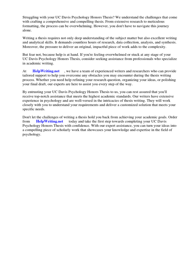 Uc Davis Psychology Honors Thesis PDF Psychology Mind