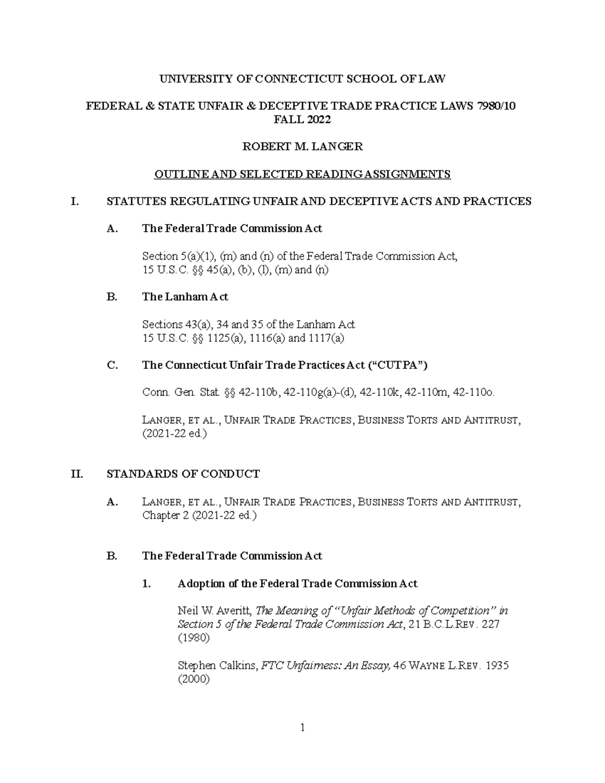 Outline and Reading Materials UConn Law Fall '22 Course 7980 4866