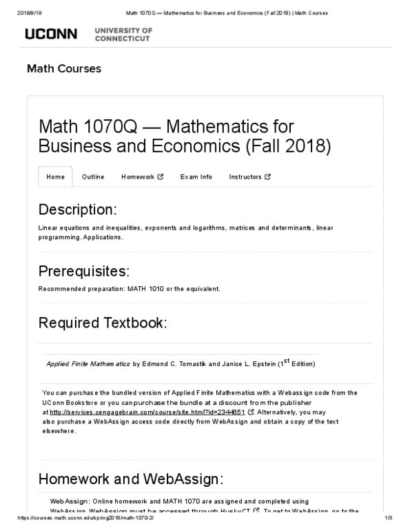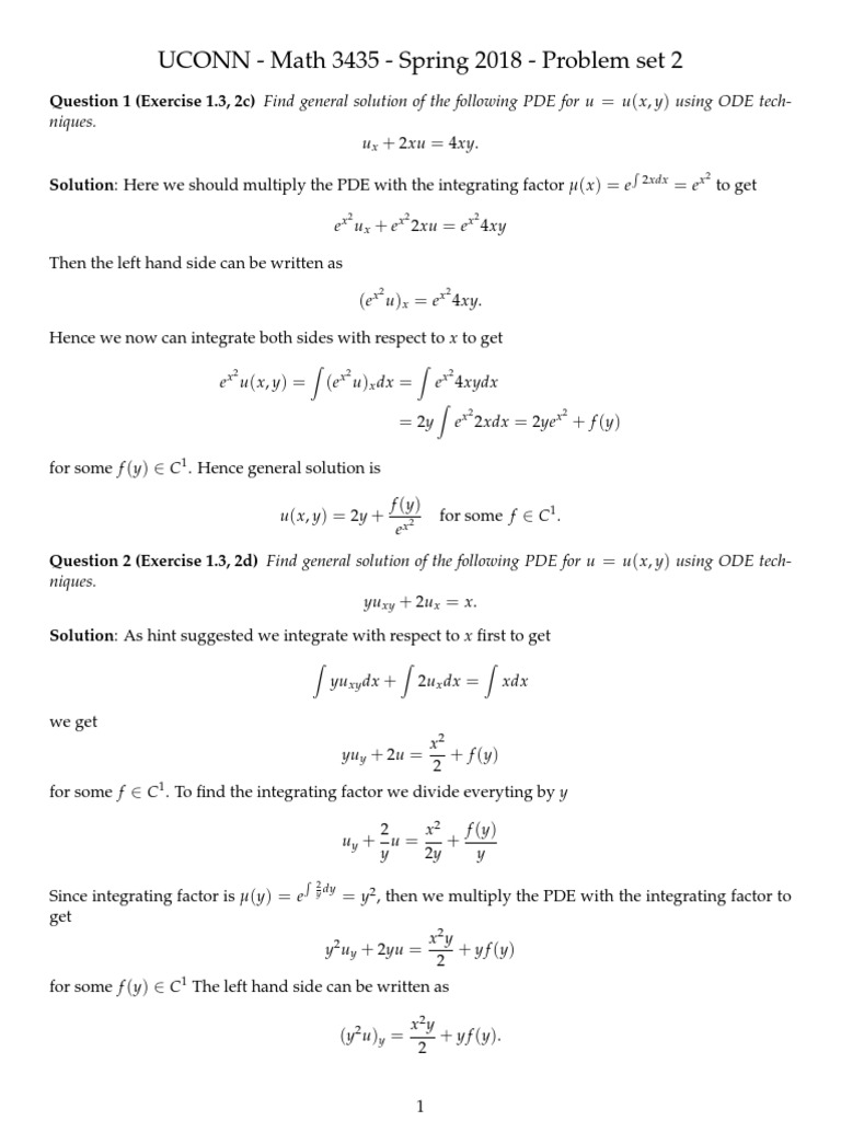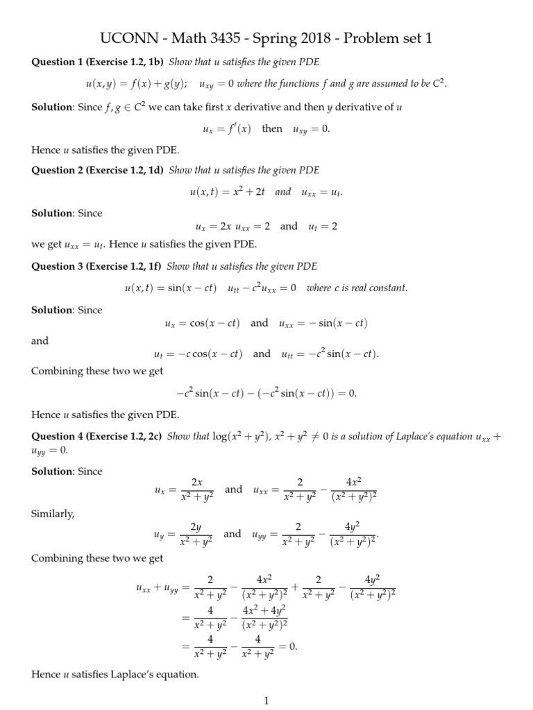 UCONN Math 3435 Spring 2018 Problem Set 1 PDF Partial