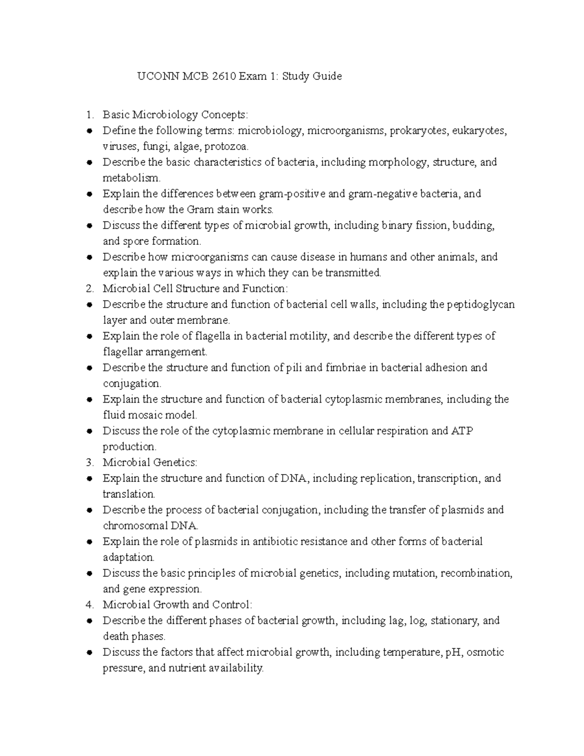 Uconn MCB 2610 Exam 1 Study Guide UCONN MCB 2610 Exam 1 Study Guide