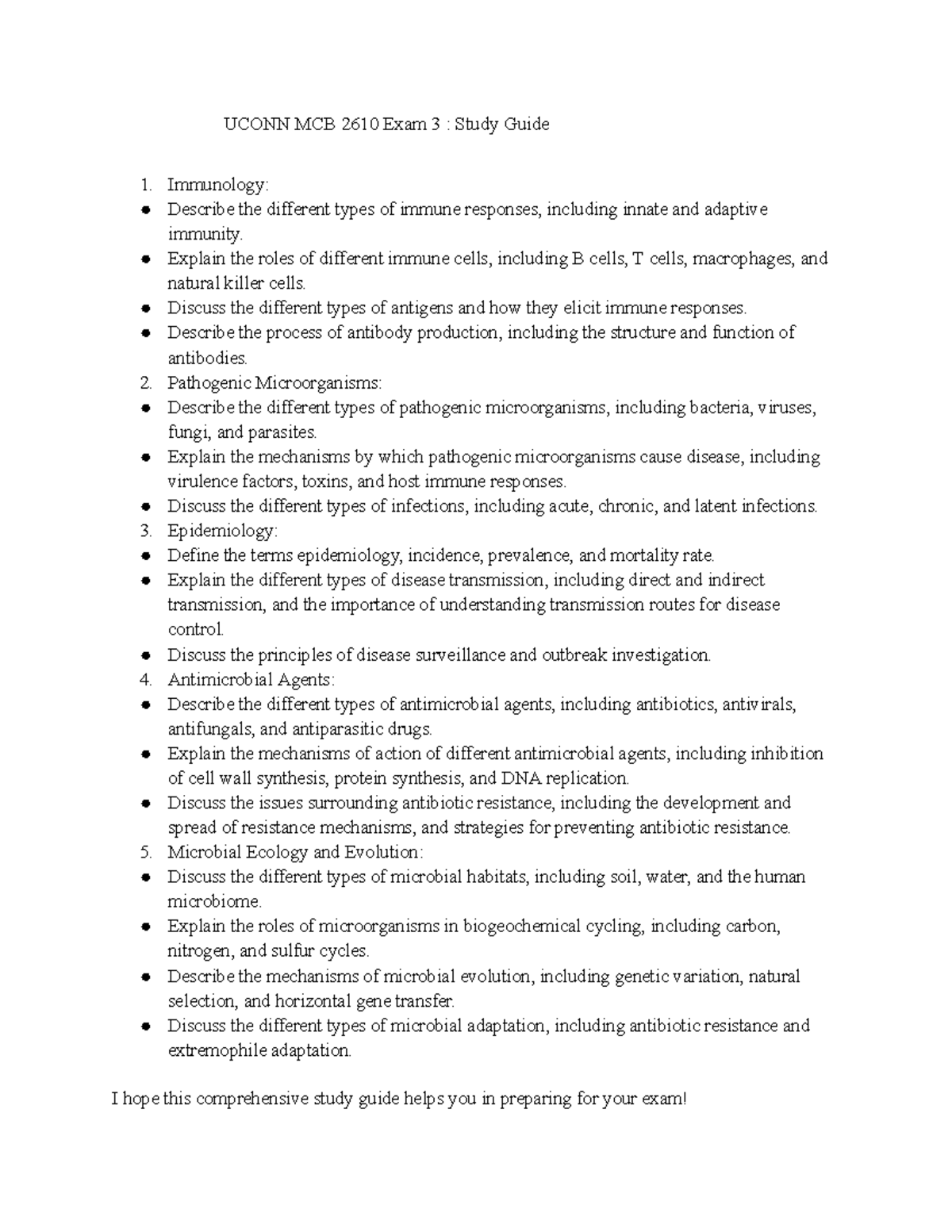 Uconn MCB 2610 Exam 3 Study Guide UCONN MCB 2610 Exam 3 Study Guide