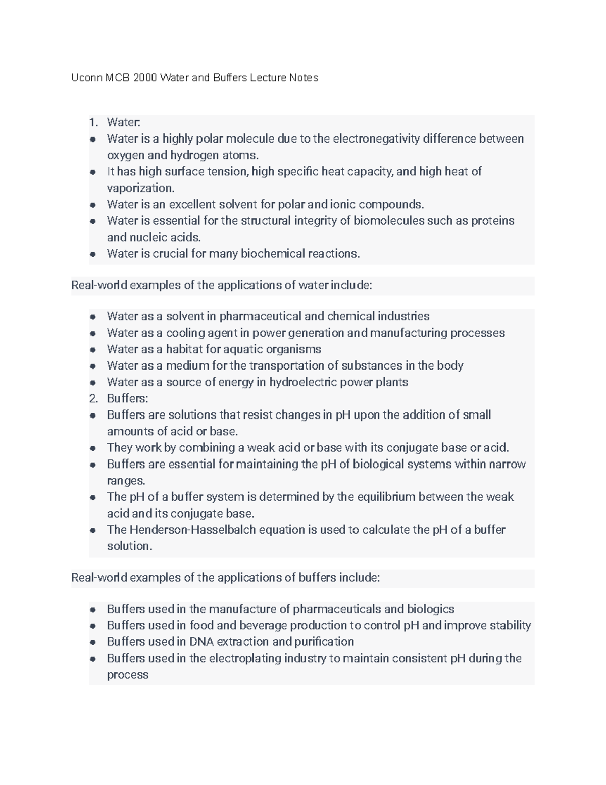 Uconn MCB 2000 Water and Buffers Lecture Notes It has high surface