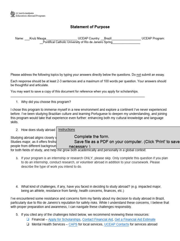 UCSB EAP Statement of Purpose 202425 PDF PDF International Student