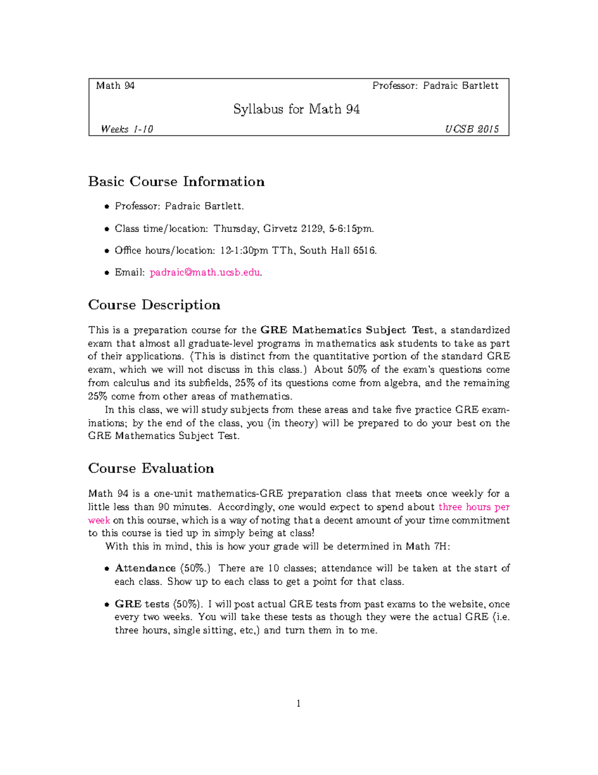 Math gre w2015 syllabus Math 94 Professor Padraic Bartlett Syllabus