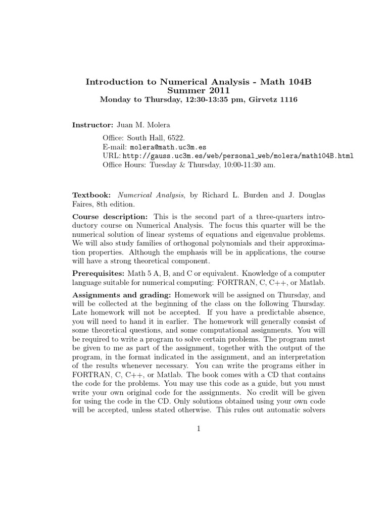 Syllabus for Math 4A Linear Algebra with Applications at UCSB PDF